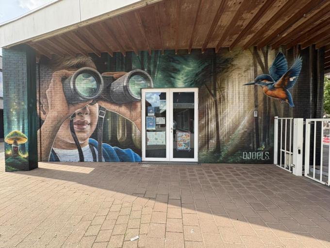 Graffiti-artieste Djoels heeft een nieuwe muurtekening gemaakt aan de ingang van haar voormalige lagere school in Meulebeke. Het werk prijkt aan de inkom van de Sint-Amandusschool in de Karel van Manderstraat.