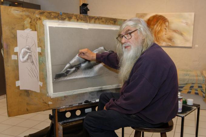 “Maar ik kan niet stilzitten, dus werk ik nog 6 dagen op 7. Ik maak nog kleinere beelden en ook veel tekeningen. Iedere donderdagavond komen er een viertal mensen hier in het atelier les volgen en de zaterdagvoormiddag kan je mij hier zeker achter de tekentafel vinden.”