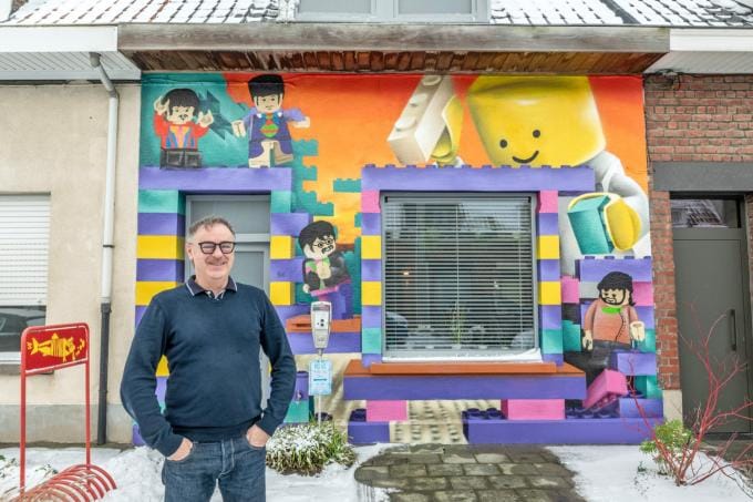 In de Sint-Jozefsstraat kun je niet naast de woning van Nik Brouckaert (56) kijken. Sinds enkele weken is de gevel omgetoverd in een lego-achtig graffitidecor. “Ik houd van felle kleuren, van oud speelgoed zoals lego en plastieken voorwerpen. De buren kennen mijn uit de hand gelopen passie al en reageren overwegend positief.”