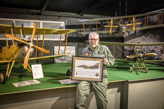 Rik Foulon (70) van luchtvaartmuseum Old Leghem kreeg onlangs wel heel speciale bezoekers over de vloer. Een groep van ruim twintig piloten van Defensie bracht een bezoek aan het luchtvaartmuseum in Ledegem. Als bedankje overhandigde de groep Rik een kader met de handtekeningen van de piloten.