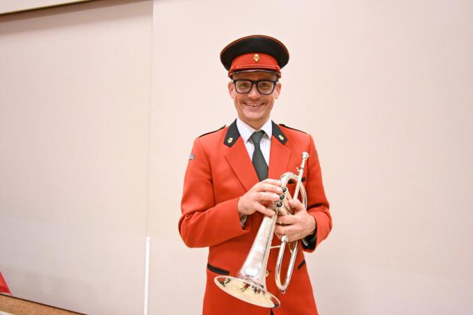 Arne Cools (46) werkt als individuele begeleider bij Atoom80, onderdeel van vzw Oranjehuis, en begon al op zevenjarige leeftijd te trommelen bij Frans Bekaert. “De kiem was gezaaid en al snel kwam ik in het toenmalige trommelkorps terecht. Meester Hinnekint leerde me wat noten lezen en toen ik negen was, mocht ik naar de muziekschool”, vertelt Arne. “Zoals velen ben ik gestart als trommelaar, maar na een jaar muziekschool nam ik er graag de bugel bij. Wat was ik blij met dat mooie instrument! Ik speel intussen ook cornet en trompet, de ‘vriendjes’ van de bugel. Ook het slagwerkinstrumentarium heb ik nog verder uitgebouwd en tijdens corona waagde ik me verder aan piano en een beetje ukelele, maar dat is eerder iets om me thuis mee te amuseren.”