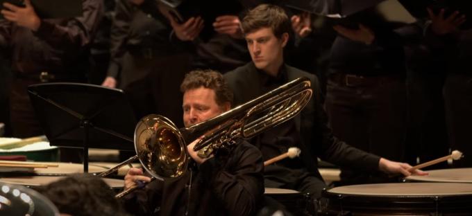 Peter Leroy is 43 jaar woont in Torhout en heeft roots in Ieper. “Ik ben leerkracht aan dé Academie Ieper, waar ik trombone, groepsmusiceren, compositie, arrangement en klassieke schriftuur doceer”, vertelt hij. “Daarnaast ben ik freelance muzikant en componist bij de uitgeverij Ypress Digital Music Edition. Sinds 1994 speel ik mee met de Koninklijke Harmonie Ypriana onder leiding van Nico Logghe, het orkest waarin ik het langst actief ben. Ondertussen speel ik ook al twintig jaar mee met het Houtlands Harmonieorkest. Ook bij de bigband, de Pink Band, geleid door Elias Storme, kunnen ze sinds 1996 op mijn aanwezigheid rekenen. Met De Brasserie, een Iepers koperensemble onder leiding van Jasmien Vandewalle, werk ik sinds 2017 mee aan prachtige projecten.”