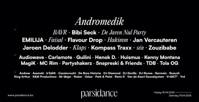 Op vrijdag 18 en zaterdag 19 april vindt op de terreinen van Scouts Rumbeke opnieuw Parsidance plaats. Het dancefestival is de opener van de festivalzomer in Roeselare. Vandaag heeft de organisatie de line-up bekendgemaakt. Daarbij mooie namen zoals Andromedik, Bibi Seck, Faisal of Jeroen Delodder.