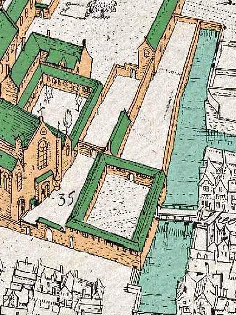 Het gebouw kreeg de naam Pand en verrees naast het minderbroedersklooster zoals te zien op de kaart van Marcus Gerards (1562). Het staat langs een reitje dat de naam Pandreitje kreeg.