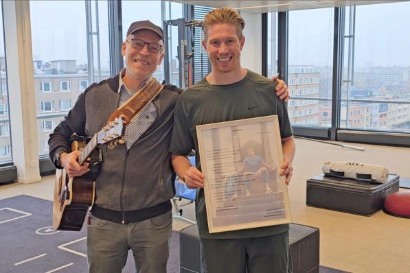 Izegem / Muziek Izegem / Muziek KDC ontmoet KDB, cabaretier Karel Declercq brengt ode aan revaliderende Kevin De Bruyne: “Hopelijk kunnen we hem ook eens in Napels ontmoeten” 18 december 2025