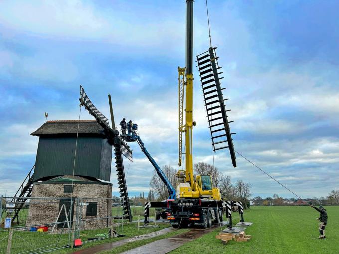 De werken worden uitgevoerd door Molenbouw Wieme uit Machelen. Molenbouwer Kris Wieme licht toe: “Vandaag zien we de molen zoals hij in 1993 is gerestaureerd, maar nu brengen we hem terug naar de toestand van 1918. De wieken komen opnieuw op de binnenroe, wat betekent dat de volledige bediening en mechaniek moet worden aangepast.”