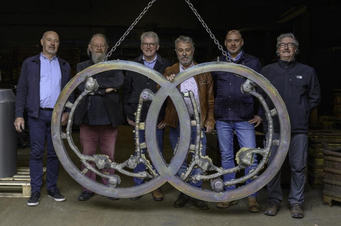 De ringen werden gegoten door de firma De Sweemer uit Eeklo. “We kregen met de vzw heel wat medewerking. Naast het verzamelde oorlogsschroot bij de landbouwers kregen we ook hulp van de firma Coopman uit Passendale, mijn vroegere werkgever, voor het gieten van de moule en we kregen ook hulp van ijzerhandel Vandebroucke uit Passendale.”