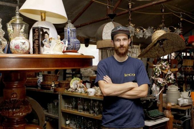 Robbe runt een verkoopzaal in Vladslo (Diksmuide) en runt sinds twee jaar in de Langestraat in Brugge een Brocante Café. “Ik merkte dat veel mensen van mijn generatie niet zomaar een verkoopzaal binnenstappen, dus ontstond het idee om die combinatie te maken. Op maandag en dinsdag ga ik op zoek naar materiaal, op woensdag en zaterdag sta ik in de zaak in Vladslo en op vrijdag vind je me meestal in Brugge. Het concept slaat steeds meer aan, merk ik.”