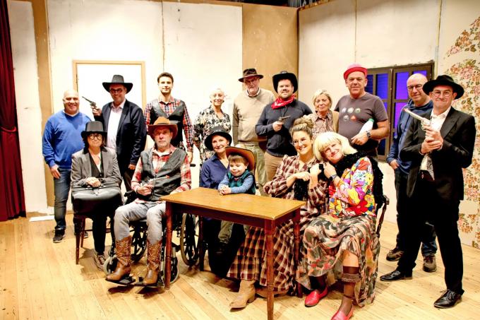 “Voor het stuk van dit jaar nemen we de toeschouwer mee naar de Far West en de saloon van barvrouw Celine en haar dochter Suzy”, vertelt voorzitter Gaspard Vandewalle ons. “Wanneer de sheriff de saloon verlaat wordt hij in de schouder geschoten. Er wordt een beloning van 500 dollar uitgeloofd voor wie de dader vindt. De indiaan Winnie, die een konijn wilde schieten, vreest dat hij per ongeluk de dader is en besluit zich als danseres te vermommen. Wanneer ook de ex van Celine opduikt, de eigenaar andere plannen blijkt te hebben met de saloon en ook twee meisjes van plezier en een premiejager hun opwachting maken gaan de poppen aan het dansen. Het wordt weer een billenkletser, maar wie goed oplet zal op subtiele wijze het probleem van discriminatie terugvinden. We hebben dit maal echt het onderste uit de kan gehaald wat de kostuums en het decor betreft. We willen de toeschouwers echt een wow-effect bezorgen. Met 14 rollen en een aantal figuranten wordt het ook qua bezetting een topper.”
