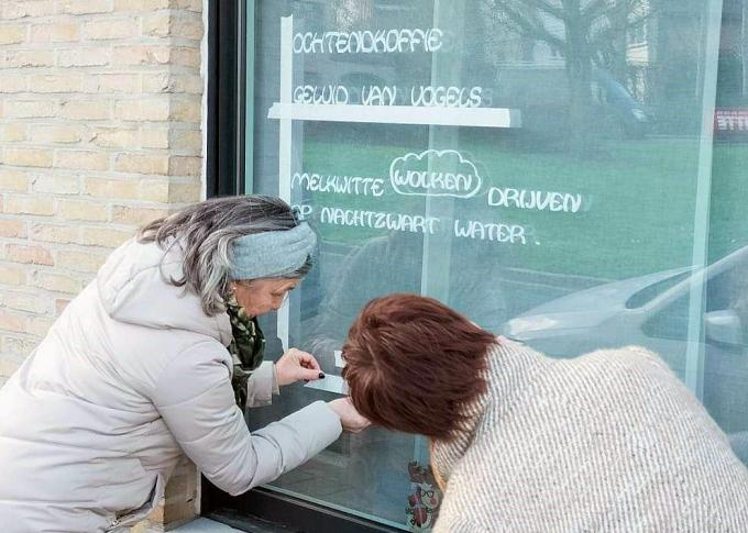 Samen met de deelnemende Zwevegemnaren overspoelt de bib de straten van Zwevegem en deelgemeenten met gedichten. “Deelnemers kozen een gedicht op de website en stelden een raam langs de straatkant beschikbaar.”