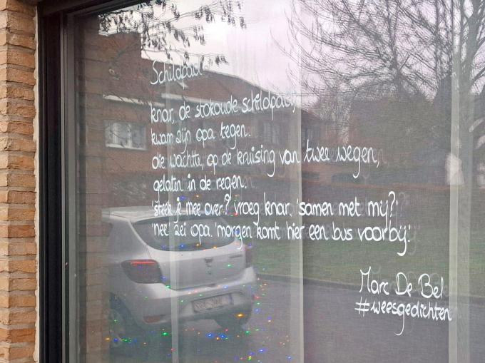 In het kader van de Poëzieweek 2026, van 29 januari tot en met 4 februari, gaan honderden Weesgedichten op zoek naar een adoptieraam. Men wil het onterechte saaie imago van poëzie slopen door straten te overspoelen met gedichten. Dit doet men door een gedicht op een raam op een benedenverdieping te plaatsen. Er zijn nog enkele van de 50 gedichten voor Zwevegem beschikbaar. Surf naar weesgedichten.be en klik door naar de pagina van Bibliotheek Zwevegem. Daar kan je een gedicht kiezen. Daarna moet je gewoon wachten tot iemand langskomt om het gedicht op jouw adoptieraam aan te brengen met afwasbare stiften. Een gedicht adopteren kan tot maandag 26 januari. Deelnemen aan deze actie kost niets. (GJZ/foto GJZ)