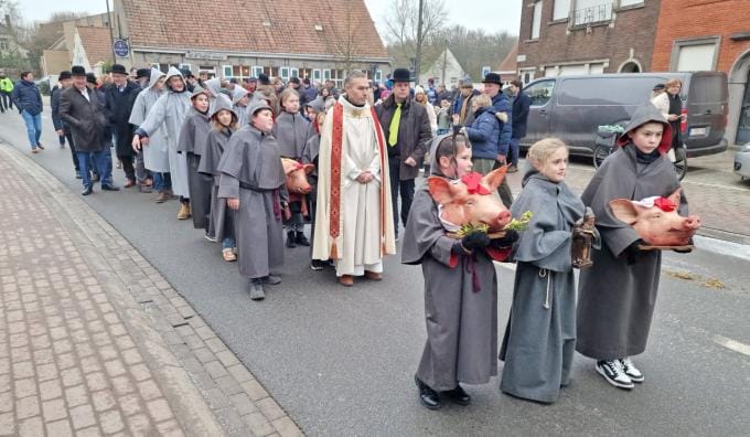 Dat de Sint-Antonius Winterommegang sinds 2023 erkend is als immaterieel erfgoed, veranderde weinig aan het verloop van de dag. “Geen luid getoeter, geen opsmuk – buiten de zwijntjes op de draagberrie- wel een zorgvuldig opgebouwde dag, die diep verankerd zit in het gemeenschapsleven. Een gebeuren waar de dorpelingen terecht trots op zijn”, zegt voorzitter van Yvegem Sportief Geert Himpens (53).