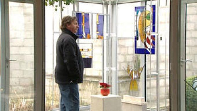Dat glasramen meer zijn dan de exemplaren die we in de kerken kunnen bewonderen, is dan weer de boodschap die Annemie De Vadder uit Loppem wil meegeven op deze dag van de ambachten. Ze maakt kunstwerken met glas, lood en opvallend: textiel. Het is al de vierde keer dat Annemie haar werk exposeert tijdens de dag van de ambachten.