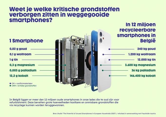 Wereldwijd wordt amper 7,5 procent van de smartphones gerecycleerd; in Europa ligt dat cijfer rond 10 procent. “De meeste oude toestellen worden illegaal geëxporteerd of blijven gewoon in de la liggen”, zegt Kaminski. “Ondertussen wordt Europa steeds afhankelijker van geïmporteerde grondstoffen, terwijl miljoenen bruikbare telefoons ongebruikt blijven.”