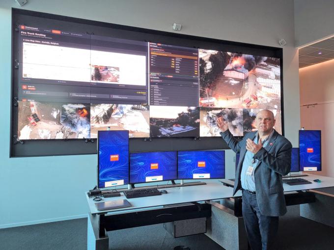 In de Enterprise Pod krijgen bezoekers een blik op de toekomst van control rooms. “We tonen niet alleen betere visualisatie, maar ook hoe lay-outs en workflows intelligenter kunnen worden ingericht”, zegt innovatiemanager Wim Verstraete. De technologie wordt wereldwijd ingezet in havens, bij politie en brandweer, maar ook in energie- en gezondheidssectoren.