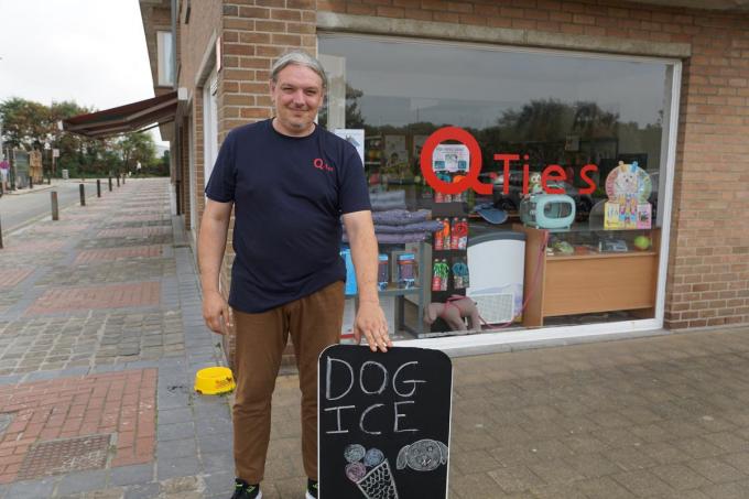 Speeltjes, eet- en drinkbakken, manden en kussens, hygiëneproducten,… je vindt ze allemaal bij Q-ties. “En dan vergeet je nog enkele leuke dingen als onze Dog Choc, een chocoladereep voor de hond, kaasstokjes (goed voor de tanden) en ons hondenijs. Dat laatste is razend populair en komt in verschillende smaken, die je als mens allicht minder aangenaam zult vinden. Maar ik garandeer je, de versie ‘appel en banaan’ gaat er gegarandeerd ook bij jou in”, grapt Bjorn.