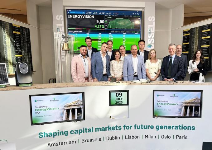 EnergyVision ging naar de beurs tegen 9,50 euro per aandeel, de onderkant van de vork van 9,50 à 11,50 euro die het zelf had vooropgesteld. Dat belette niet dat het enthousiasme groot was bij de beleggers. Bij zijn eerste koersvorming kwam een koers van 9,95 euro tot stand. Tegen de slotbel was de notering al opgelopen tot 11,95 euro, liefst 25,79 procent boven de introductieprijs.
