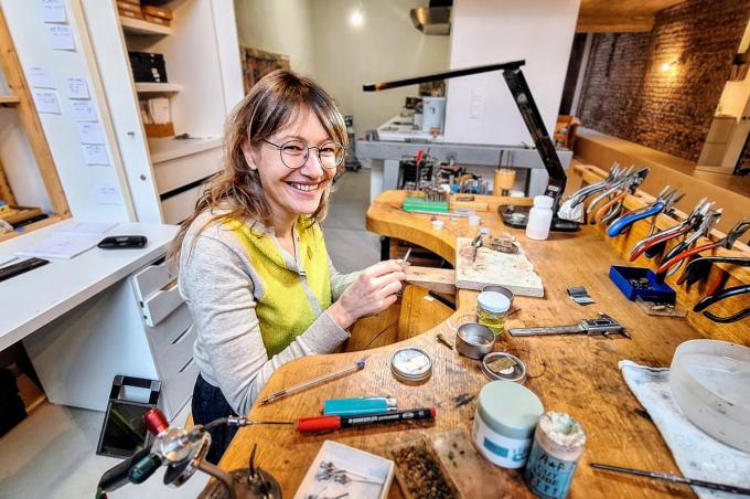Haar nieuw atelier is gehuisvest in een voormalig biljartcentrum, een pand met karakter. “De verbouwingen waren pittig, maar nu is het perfect. Achteraan smelt ik zelf mijn goud, ik giet en smeed, alles met de hand. Dit is mijn wereld. Elke dag sta ik op met nieuwe ideeën. De traagheid van het proces, het zorgvuldig vijlen, hameren en solderen, het zien groeien van een juweel onder mijn vingers… dat is wat mij drijft.”