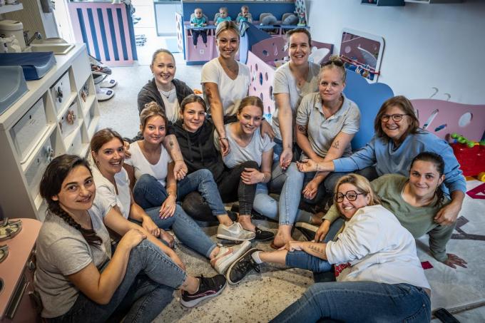 Veertien medewerkers van kinderdagverblijf Babs in Sint-Eloois-Winkel lieten recent het logo van het verblijf op hun lichaam tatoeëren. “We zijn trots om hier te mogen werken.”