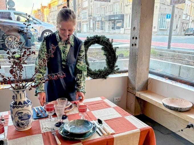 De pop-up is voor Emilie een spannend nieuw hoofdstuk. “Ik heb net ontslag genomen op mijn job om hier meer tijd in te steken. Dat maakt deze periode extra intens, maar ook heel bijzonder. De pop-up is een manier om de webshop eindelijk eens live te laten ervaren en op zaterdag kan het tafellinnen ter plaatse gepersonaliseerd worden”