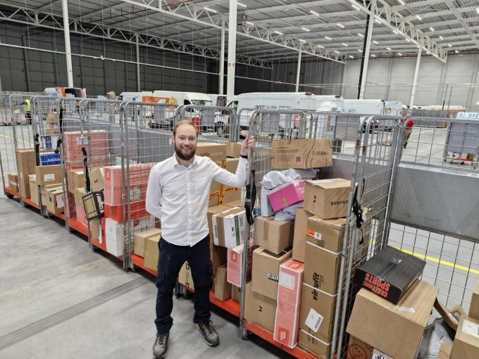 We gingen maandagochtend een kijkje nemen en zagen er een legertje van 140 bestelwagens aanschuiven om binnen in de hal volgeladen te worden. “Tot voor kort zaten we in Ardooie, maar die locatie werd veel te klein”, vertelt depotmanager Simon Spruytte. Hij was enkele maanden geleden nog procesverantwoordelijke in Ardooie en verhuisde mee naar Hooglede. “In eerste instantie hebben we hier 9.000 van de beschikbare 15.000 vierkante meter in gebruik genomen. We ambiëren een sterke groei en hebben dus nog groeimarge.”