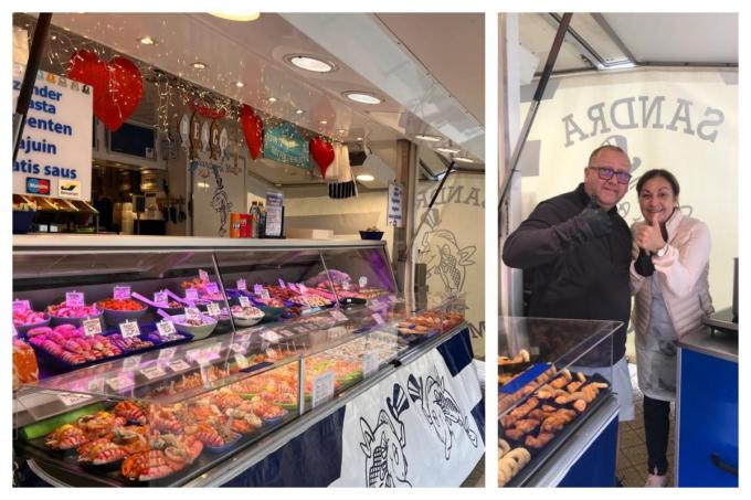 In de viskraampjes op de Visserskaai kan je traditioneel allerlei visbereidingen kopen van wulloks, gedroogde vis, surimischotels, garnalen, gamba’s, maatjes, gebakken vis tot warme hapjes. Sandra opende twintig jaar geleden haar eigen visboetiek met de hulp van haar man Manon Vanschoenwinkel. Ze kwam nochtans uit een volledig andere wereld. “Ik deed de PR bij Roularta. Ik had tijdens de weekends al meegeholpen met de vorige eigenaars en merkte dat het me echt lag. In 2005 verkochten ze hun kraam en ik heb het overgenomen”, blikt Sandra terug.