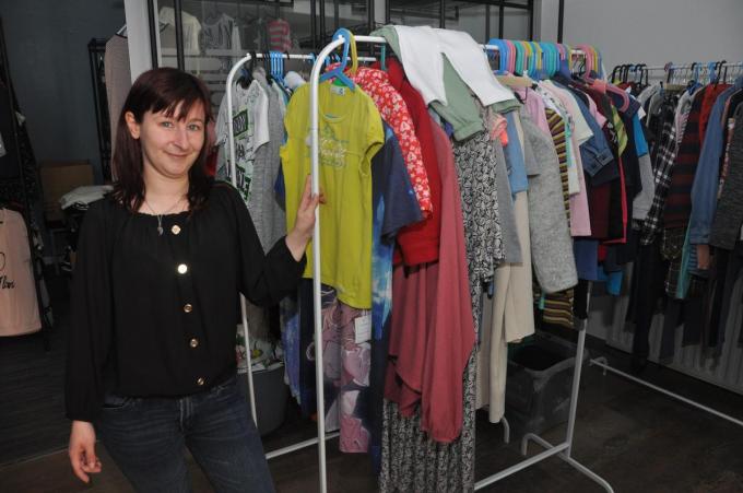 De kledij haalt Sarah bij particulieren en loten die ze onder meer opkoopt bij de Kringwinkel. “Alles hangt overzichtelijk op rekken”, zegt Sarah. “Er is ook een pashokje. Je kan trouwens nog zien dat het hier vroeger een bank was. De ruimte waar de kinderkledij hangt, is de vroegere kluizenkamer. De kluizen zijn nog aanwezig, want het zou stukken van mensen kosten om die weg te halen. We zullen ook met een klantenkaart werken en misschien komt er een webshop. Maar dat zijn we nog aan het uitzoeken.”
