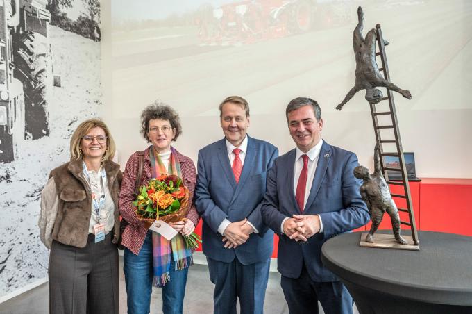 Unizo viert elk jaar het ondernemerschap tijdens de Dag van de Ondernemer. Unizo Roeselare zet niet alleen ondernemers in de bloemetjes, maar reikt ook de prestigieuze Durver en Doener-trofee uit. Dit jaar viel voor de negende editie Koen Dejonckheere, CEO van de Gimv (Gewestelijke Investeringsmaatschappij Vlaanderen), deze eer te beurt. Koen Dejonckheere heeft al zijn hele carrière een bijzondere liefde voor de maakindustrie en hielp al talloze bedrijven groeien tot toonaangevende spelers binnen hun sector. Hij werd op vrijdag 21 november verrast met de uitreiking van de trofee in Dewulf Agro in de Moorseelsesteenweg in Roeselare in het bijzijn van zijn echtgenote, de burgemeester en een 50-tal ondernemers. (RV/foto SB)