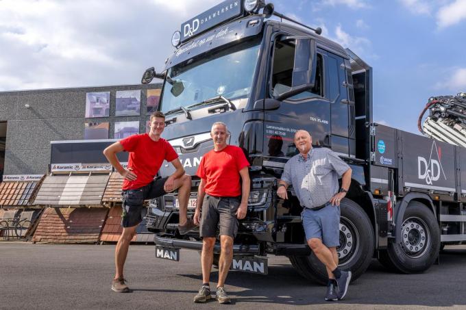 D&D Dakwerken is net aan het 25ste ‘werkjaar’ gestart en zopas heeft ook de derde generatie de intrede gedaan. “Dimi kon ook elders aan de slag, maar hij wilde hier in het bedrijf komen. Maar hij moet eerst nog de stiel helemaal onder de knie krijgen”, zeggen opa Danny en pa Davy over Dimi. Ook de liefde voor de koers zit er al drie generaties in.