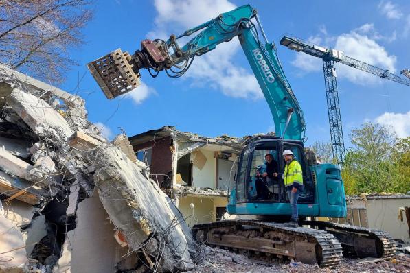 Kortrijk / Bouw Kortrijk / Bouw Afbraak van voormalig rusthuis Sint-Vincentius is begonnen: “Begijnhofpark wordt 30 procent groter” 19 april 2023
