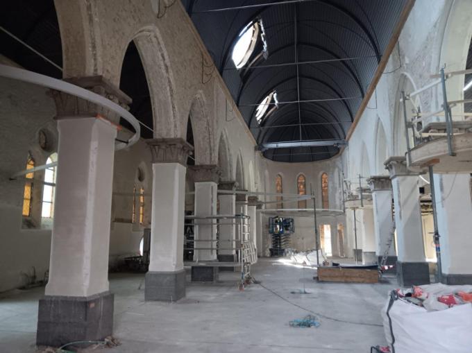 Welke werken volgen nog? “Binnenin zijn de vlakke pleisterwerken in de kerk afgerond. De akoestische pleisterwerken op grotere hoogte volgen na nieuwjaar. Daarna start ook de vloerafwerking: ongeveer de helft van de vloertegels wordt gerecupereerd uit de oude kerkvloer, aangevuld met nieuwe tegels. De plaatsing daarvan is gepland tegen eind januari. Daarnaast wordt er verder gewerkt aan het doksaal. Op de plaats waar vroeger het orgel stond, komt een studeerplek voor jongeren.”