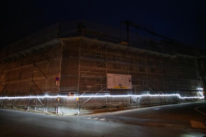 Eerst wordt een stelling geplaatst, wat ongeveer drie weken duurt. In februari komt er een torenkraan voor de bouwwerken aan het Sint-Michielscomplex. Deze kraan blijft staan tot minstens eind oktober 2025. In het Sint-Michielscomplex, waar vroeger nog de bib en de Kunstacademie hun onderkomen hadden, komen er sociale appartementen.