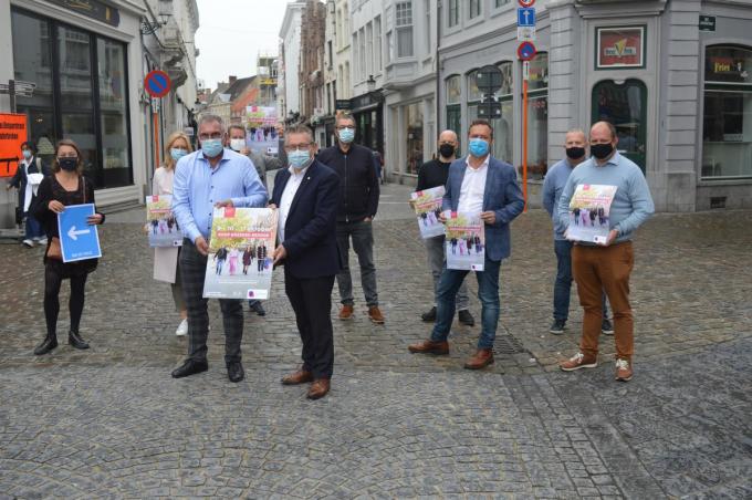 “Er zijn ontsmettingsunits voorzien op de Markt, op ‘t Zand en op de Eiermarkt. Aan de handelaars wordt gevraagd om ontsmettingsgels te voorzien zowel in de winkel als aan de kramen voor de zaak, voldoende ruimte te laten tussen de kramen en de route van het Koop Weekend met behulp van pictogrammen aan hun kraam aan te duiden. In het volledige koopweekend draagt iedereen vanaf 12 jaar bovendien een mondmasker.”