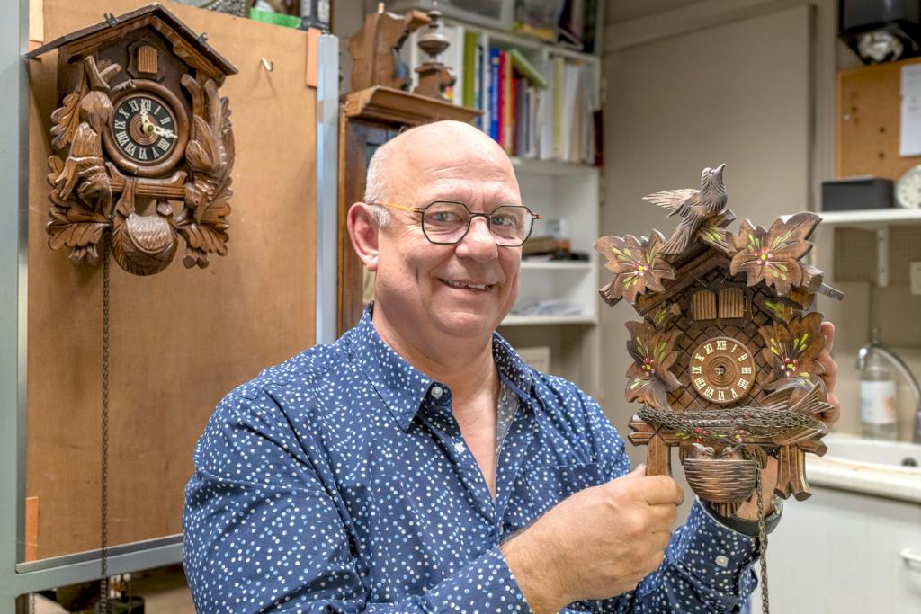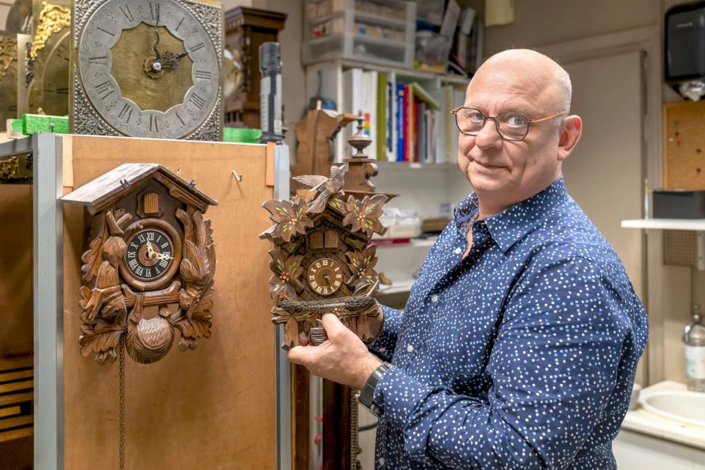 “Als klokhersteller is het een uitdaging om ze opnieuw aan de praat te krijgen, daar kan ik mezelf echt in verliezen. Niks mooier dan een defecte klok opnieuw horen tikken”