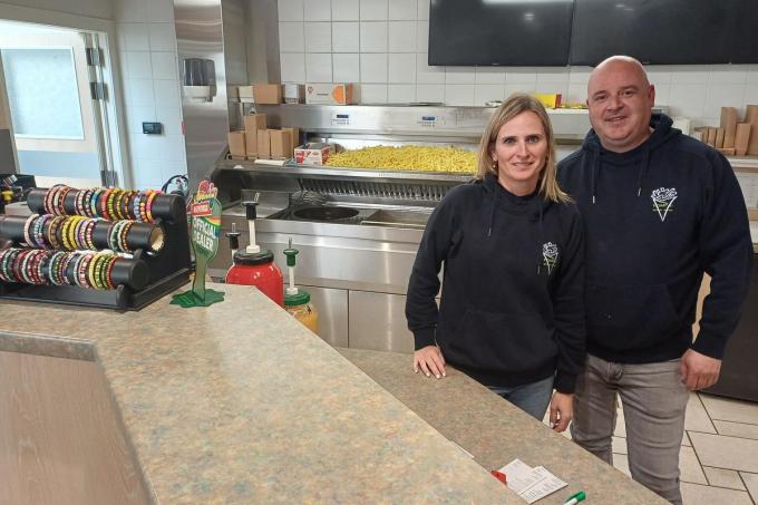 Als het koppel met zijn tweetjes in de zaak staat, is de taakverdeling duidelijk. “Eveline bakt de frietjes, ik doe de snacks.”