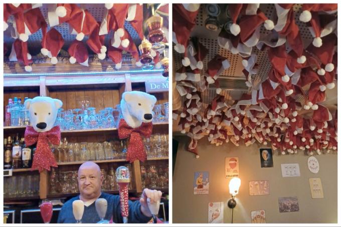 Zover dat plafond in het café reikt, reiken ook de kerstmutsen. “Ik weet zelf niet hoeveel het er zijn. Het zijn er veel meer dan vorig jaar, dat weet ik wel. Maar een exact aantal kan ik niet zeggen. Het zijn er wel minstens vijfhonderd. Dat is al de moeite.”