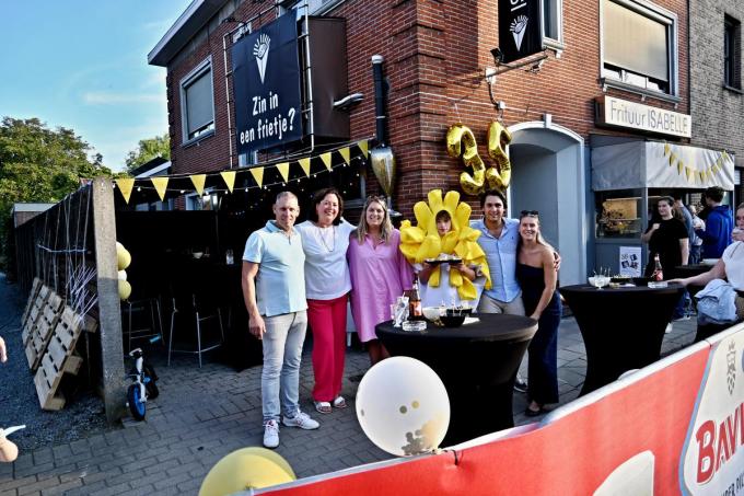 Isabelle veranderde echter van gedacht. “Ik vond het mooi en bijzonder dat je als kind de succesvolle zaak van je ouders kan verderzetten. Ik waagde de sprong en heb er geen seconde spijt van. Ik moest op mijn 19de wel ‘ontvoogd’ worden door de rechtbank, want je moest toen 21 zijn om als zelfstandige een zaak te kunnen runnen”, weet Isabelle, die intussen al 35 jaar haar frituur uitbaat en dat vierde met de klanten. Ze trakteerde hen op een hapje en een drankje, een keer ’s middags en een keer tegen de avond. “Het is geweldig dat ik intussen een heleboel klanten heb die ik zag opgroeien. De mensen die vroeger als kind naar de frituur kwamen, hebben intussen ook zelf een gezin en komen nog langs. Ik leef in dat opzicht ook heel hard mee met mijn klanten die vaak hun geluk delen, maar ook soms hun verdriet”, vertelt Isabelle. “Ik bied graag een luisterend oor en doe graag een babbeltje. Zo ben ik ook steeds op de hoogte van wat leeft in de regio. (lacht) Als het kan, maak ik daar met veel plezier tijd voor. Op vrijdag is dit door de grote drukte wel moeilijker, want we willen natuurlijk niet dat onze klanten te lang moeten wachten.”