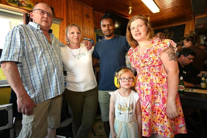 Het was een emotioneel afscheid van Marijke Vanmaele en Gino Wyffels, die vele jaren het gezicht waren van het vertrouwde volkscafé. Op hun beurt bedankten de uitbaters ook de vele verenigingen die hier ooit hun stek hebben gehad, de vele vaste klanten en ook de sporadische bezoekers. Met een groots volksfeest en een heus orkest werd uiteindelijk voorgoed het slot omgedraaid om een ander leven te beginnen. Op de foto zien we Gino en Marijke in het gezelschap van dochter Sharon, zoon Aron en kleindochter Liyana. Voor café Gildenhof en de achterliggende feestzaal Edelweiss is momenteel nog niet beslist of het een café blijft.