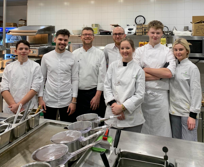 Het is ondertussen een jarenlange traditie dat er een beroep gedaan wordt op de leerlingen van het zevende specialisatiejaar gastronomie van Spermalie. Dit is voor hen een waardevolle stageperiode met het oog op latere tewerkstelling. Praktijkleraar Peter Keirsbilck begeleidde de leerlingen en werkte mee om alles in goede banen te leiden. Voor de leerlingen is het hard werken in heel speciale omstandigheden. (PDC)