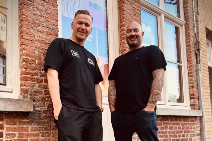 De naam voor deze nieuwe hamburgerzaak, Mosh!, die dus géén deel uitmaakt van een keten, is een ode aan de vriendschap tussen oprichters Tom Degroote en Pieter Vermeersch. Ze leerden elkaar kennen in de hardcore scene, allebei als zanger in een band.