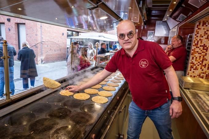 Hij had ook altijd goed het advies van zijn oom in de oren geknoopt. “Als je iets op de markt wil doen moet je zorgen dat het vers is. Onze pannenkoeken ter plaatse bakken, dat zorgt mee voor de sfeer en ambiance. De geur lokt ook de mensen. Bij ons kun je ze kopen per gewicht, maar ook een pannenkoek met suiker het het vuistje blijft altijd populair.”
