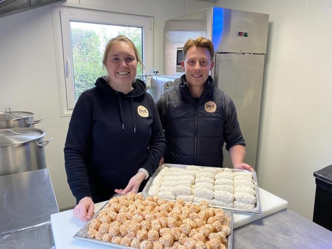 Xander Gryspeert (31) en Anne-Sophie Verhaeghe (31) wonen met hun zoontjes William en Baptiste, een tweeling van drie jaar, in de Mariastraat in Veldegem. Bij hun woning hebben ze hun atelier, dat toepasselijk Kroket werd gedoopt. Want dat is wat Xander en Anne-Sophie doen: kroketten maken. Geen gewone aardappelkroketjes, wél garnaalkroketten, kaaskroketten en Veldegemse kroketten. “De Veldegemse kroket bestaat uit Serranoham, curry en gekruid paprika-paneermeel”, legt Anne-Sophie.