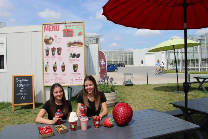 De zusjes krijgen in de zomer versterking van jobstudenten, waaronder hun nicht Emily. “We zijn tot 31 augustus open en dat van dinsdag tot en met donderdag van 14 tot 20 uur en op vrijdag en zaterdag tot 19 uur. Dat het concept aanslaat is alvast duidelijk. “Soms durven de mensen al eens eerder dan 14 uur langs komen en op heel zomerse dagen loopt het al eens uit als ze nog een lekker dessertje willen. Het strafste wat we meemaakten, is dat ze hier heel wat mensen met de wagen een uur hebben aangeschoven om aan aardbeien te raken. Dat was onze drukste dag ooit”, lacht Laurien. “Wie dat wenst, kan ook telefonisch een bestelling doorgeven en we staan ook open voor bezoeken van groepen. Als ze bellen, kunnen we gerust een mooi plekje voor hen vrijhouden.”