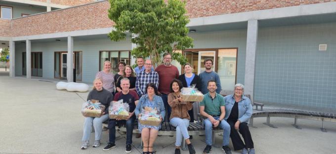 Nu werden de winnaars bekendgemaakt en de prijzen uitgereikt. “De deelnemers moesten vijf vragen beantwoorden over de korte keten, met als schiftingsvraag het gewicht van een zak aardappelen. Vijf gelukkige winnaars ontvingen een mand vol streekproducten, geschonken door de standhouders van de Korte (k)Eten Markt. De winnaars van de wedstrijd zijn Greta Vandierendonck, Bart Schepens, Herman Van den Bosch, Shania Beelaert en Emma Maertens”, aldus schepen van Economie Bart Vergote. (BC/foto BC)
