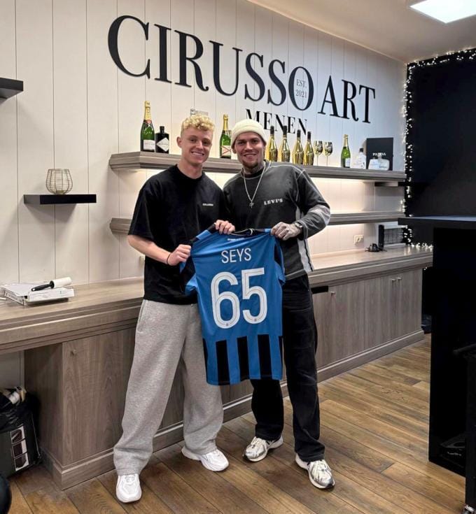 Opmerkelijk bezoek in Menen rond de jaarwisseling. Club Brugge-speler en Rode Duivel Joaquin Seys kwam langs bij Cirusso Tattoo om een nieuw stukje lichaamskunst te laten plaatsen. “We werken vaak samen met pro-voetballers, en daar genieten we een uitstekende reputatie.” Tattoo’s en andere vormen van lichaamskunst blijven toenemen in populariteit. “En zo kwam Joaquin Seys in ons filiaal van Menen terecht!” Voor Cirio Wassenhove, zaakvoerder van de de tattoo-keten, is de komst van de profvoetballer geen uniek gebeuren. “We werken vaak samen met voetballers. Ze kennen onze naam en weten dat we hier kwaliteit leveren. Op die manier gaat dat rond en bellen ze ons op als ze een nieuw project hebben.” Joaquin koos voor een afbeelding van een biddende engel. (CLL)