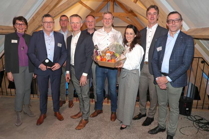 Bij Ward Dejonckheere en Leen Verbeke vond de nieuwjaarsreceptie van Unizo Boezinge-Elverdinge-Zuidschote plaats in aanwezigheid van heel wat leden. Daarbij werd aangekondigd dat Kristof Desmet de nieuwe voorzitter wordt van de Unizo-afdeling. Hij volgt er Gerdy Verhack op, die na vele jaren een stapje opzij zet. Gerdy blijft nog wel bestuurslid. Het dynamische bestuur is van plan om ook in 2026 met heel wat activiteiten naar buiten te komen. Op de foto zien we Dominiek Segers, uittredend voorzitter Gerdy Verhack, Philip Leroy, de nieuwe voorzitter Kristof Desmet, Bart Janseghers, Ward Dejonckheere, Leen Verbeke, schepen Miguel Gheysens en Geert Meuleman. (EF/foto EF)
