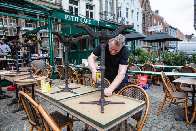 Om een vlotte organisatie mogelijk te maken, mogen de vaste terrasconstructies in de Brugse binnenstad al worden opgebouwd op maandag 31 maart en dinsdag 1 april. Op de Markt en het Simon Stevinplein moet de terrasopbouw uiterlijk dinsdagavond 1 april voltooid zijn.