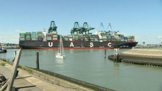 De UMM SALAL ligt hier één etmaal. Net lang genoeg om zo’n 1500 containers te lossen en een nieuwe vracht te laden. Voor Olivier de Brabandere uit Waregem is de haven van Zeebrugge een belangrijke commerciële schakel. Hij wilde zo’n megaschip wel eens van dichtbij zien.