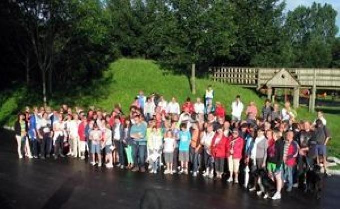 Iedereen had een paraplu in aanslag, maar de weergoden hielden het droog en zonnig. Na afloop vond er in de cafetaria van het sportcentrum een Leffereceptie plaats.