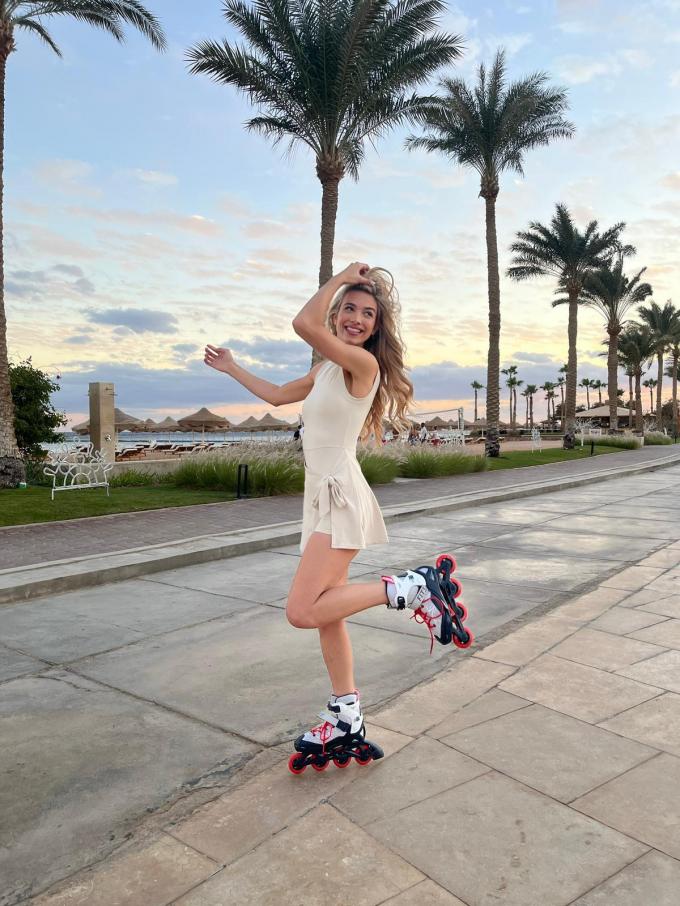 En ze is ook inventief. Om zich voort te bewegen, heeft Kiana haar inlineskates uit de kast gehaald. “Als kind was ik al verzot op skeeleren, nu heb ik die passie herontdekt. Het maakt mijn hoofd vrij en zorgt ervoor dat ik de pijn onder controle kan houden. Ik had mijn rolschaatsen zelfs mee toen we met alle finalistes van Miss België op reis waren in Egypte.”
